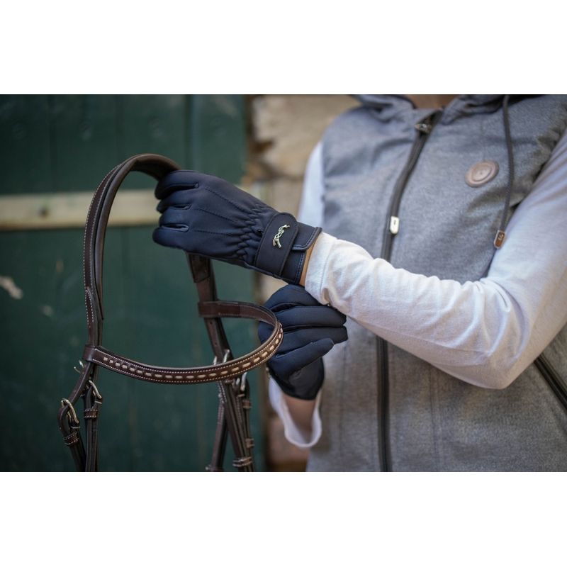 Already available in black, the Comfort riding gloves from Collections Pénélope is designed for all the riders wishing to protect their hands while riding, always with comfort and elegance. It is lined to keep your hands warm, but still light to wear thanks to the top part of the hand, super elastic. The inside of the hand is made of anti slip fabric, and the end of the finger is covered with a Digital touch fabric. The glove is fastened with a velcro on which you can find a Pénélope charm.