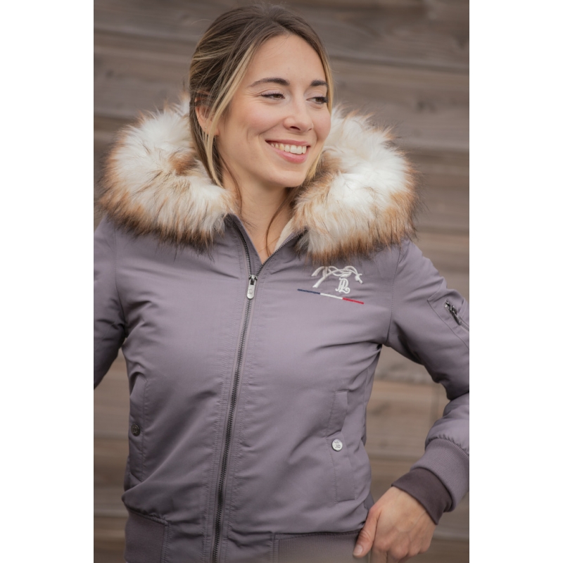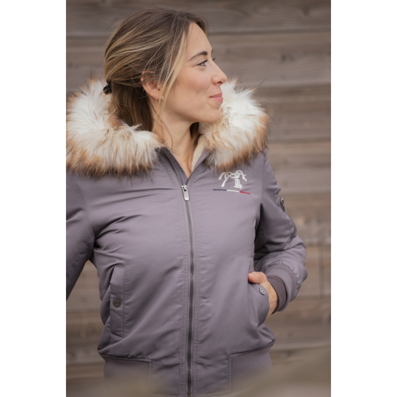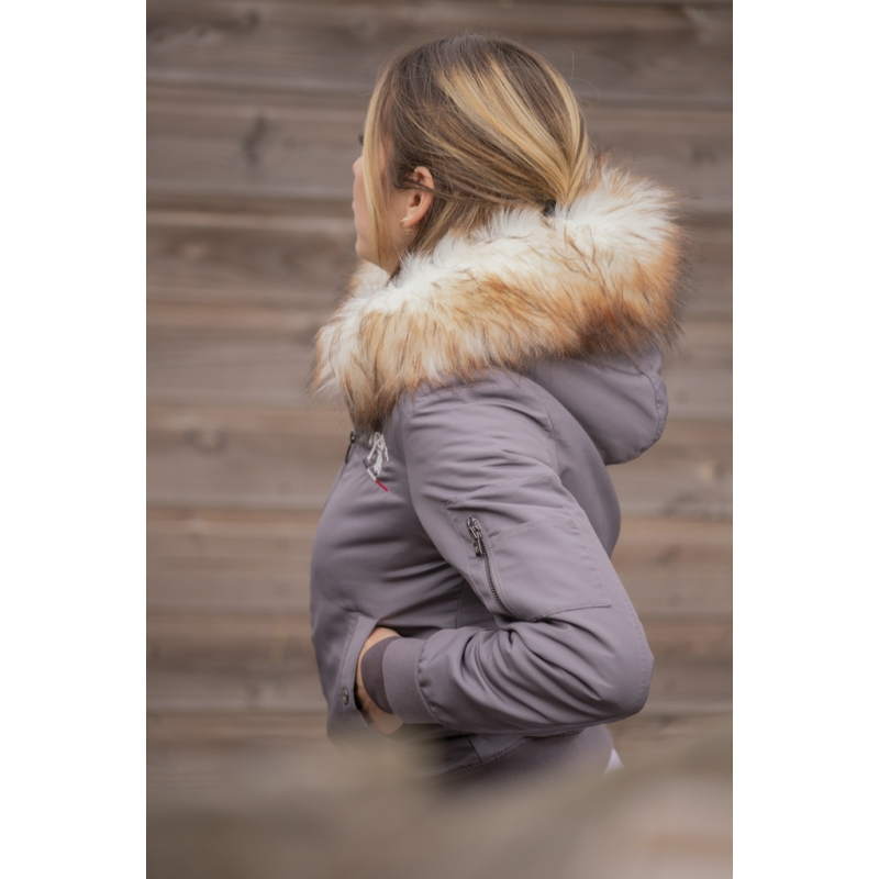 It's a trendy new shade for all the women who aren't afraid to shine. The Lyon Bombers jacket has every assets : a short cut, two pockets closed by a snap button stamped PL and its hood is decorated with a beautiful fake fur. There is an additional pocket on the left sleeve. The Lyon bombers has an elastic band on the bottom of the jacket and the cuffs. This jacket is water repellent but not waterproof.
