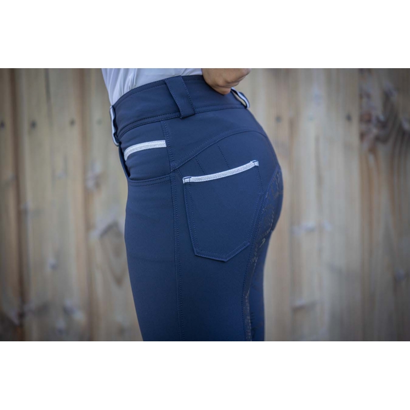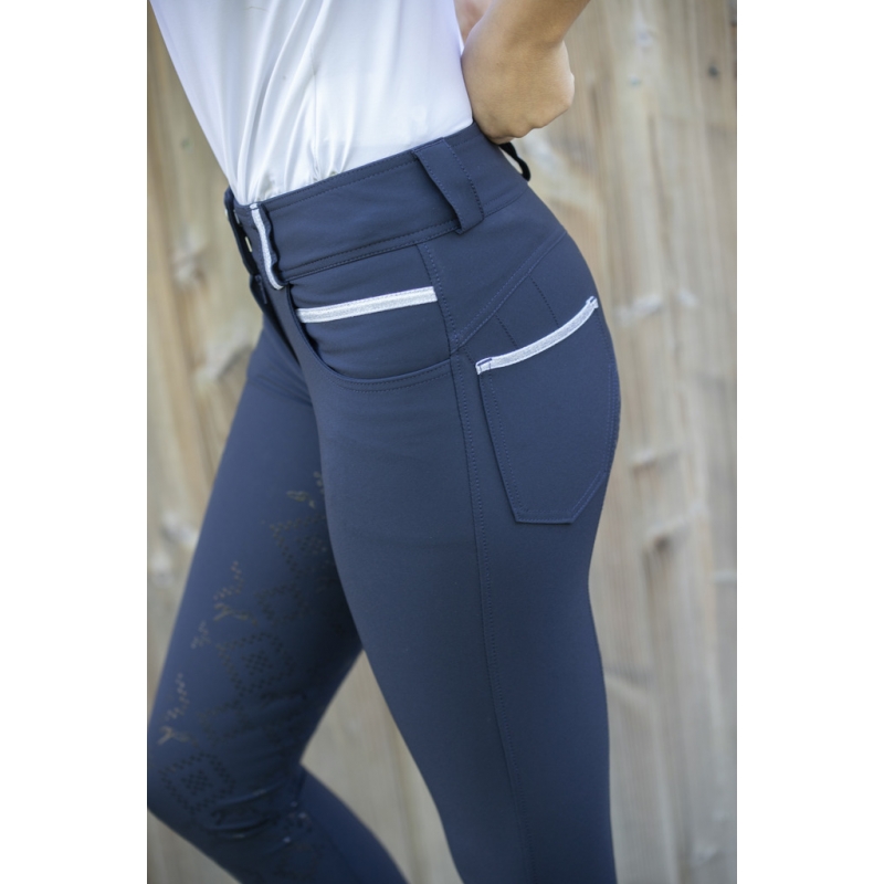 Identical model to the Fun breeches, the Fun Full Seat breeches are now in dressage version. It is equipped with a silicone grip on the inside of the thighs and on the seat for the rider's stability in the saddle. It has two pockets in the front and two in the back with a contrasting silver flat piping. Its slightly plunging, mid-low waist makes it a real must-have among breeches. The bottom leg is made of very comfortable and stretchy lycra to fit all body types and leg lengths.