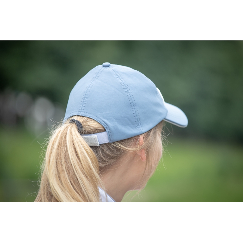Our lovely cap is back for this summer ! Still super light and sober in Artic Blue, it will match so many different looks. The Pénélope Cap is perfect for every rider who want to be safe from the sun once on the ground, or for the ones who want to stay sporty and elegant. The cut is perfect, and matches every size and shape of heads, thanks to its silver velcro on the back. Our Pénélope 3D logo is embroidered on the right front part.