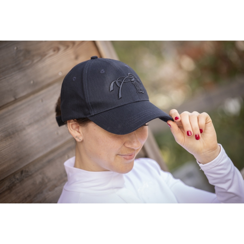 The Naomi Team cap from Pénélope Collections is crafted from a fabric with very discreet small chevron patterns. The Pénélope logo is embroidered in 3D tone-on-tone at the front. There are six ventilation holes on the top, and the size is adjustable with a velcro strap at the back, accented by a blue-white-red line.