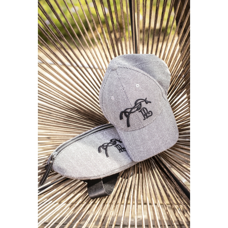 "Naomi" Cap adorned with a chevron pattern and 3D embroidery of the Pénélope logo on the front. It is ideal for sun protection both at the stables and in the city. It is adjustable with a Velcro strap at the back.