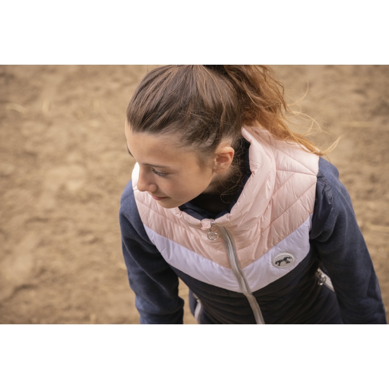 Super trendy padded vest with 3 different colours on the same vest! It will be useful in every type of situations, if you are riding or just hanging out in the city. It comes in silver-white-artic or navy-white-pink, and will always perfectly match one of your look. This padded jacket is ideal for mid season or as an under layer for colder days.