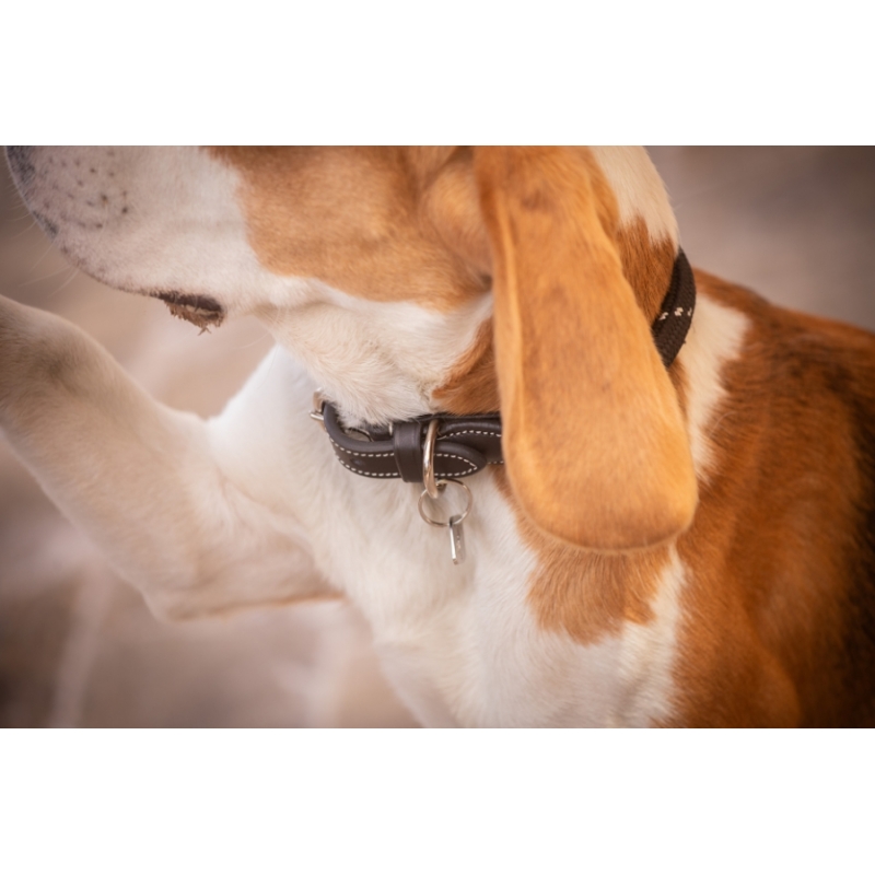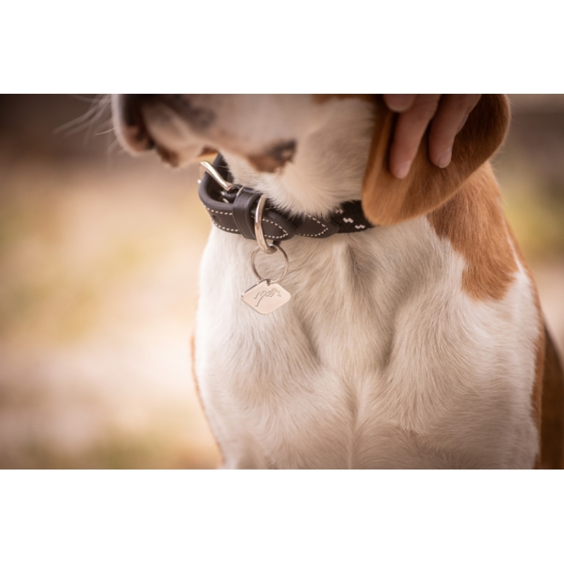 The Billie Dog Collar is crafted from two-tone round rope. Adjustable, it features a durable leather buckle. For a coordinated look, it pairs perfectly with the Billie Dog Leash.