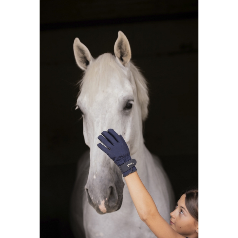 Eden by Pénélope Winter Riding Gloves are designed for all young riders who want to protect their hands with comfort and elegance while riding. They are well-lined to keep your hands warm in winter. They remain lightweight thanks to their ultra-stretch back, ensuring optimal freedom of movement. The palm is non-slip, and the tips of the index finger and thumb are covered with 'Digital Touch' fabric. The Winter gloves close with a strap topped with a Pénélope charm.