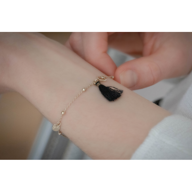Eugenie bracelet, we like to wear it for its details : its original black pompom and its golden tassels. It matches perfectly the Eugenie necklace. The Penelope Collections jewels, the most beautiful way to take the equestrian and feminine spirit, everywhere with you.