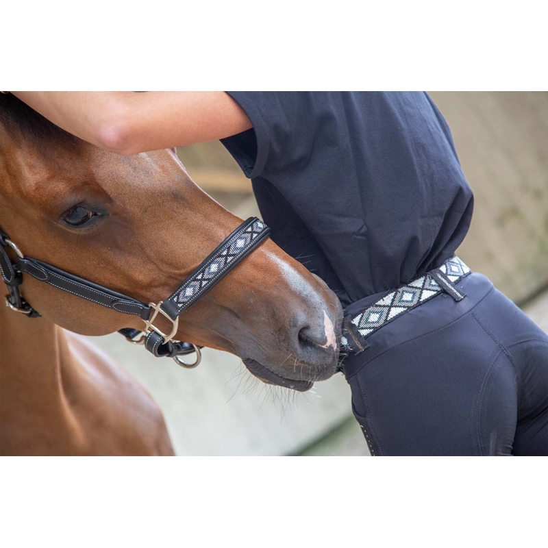 To complete our Pearl collection, already filled with belts and dog collars, we added this leather and beads halter. It comes with stainless steel buckles. To easily put it on your horse, it can be opened under the cheeks thanks to a hook. It is perfectly adjustable thanks to a buckle under the noseband, and double adjustment on the head.