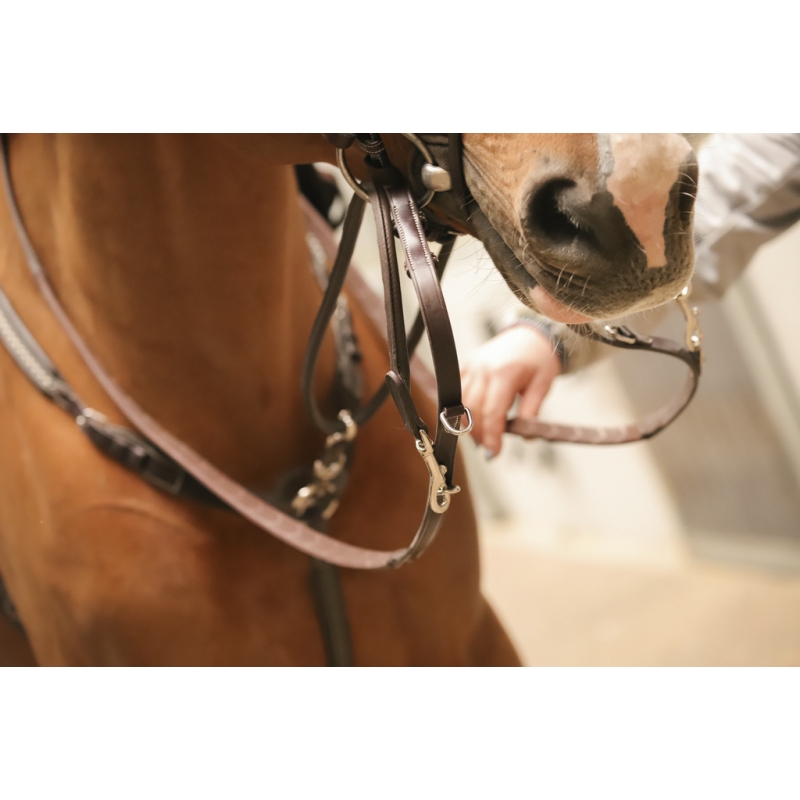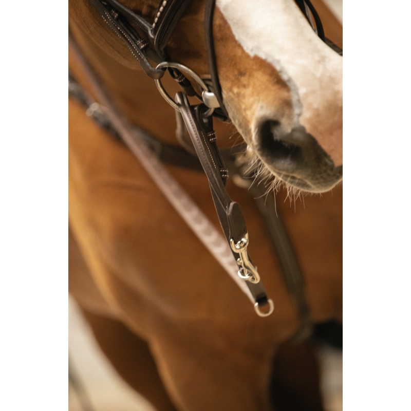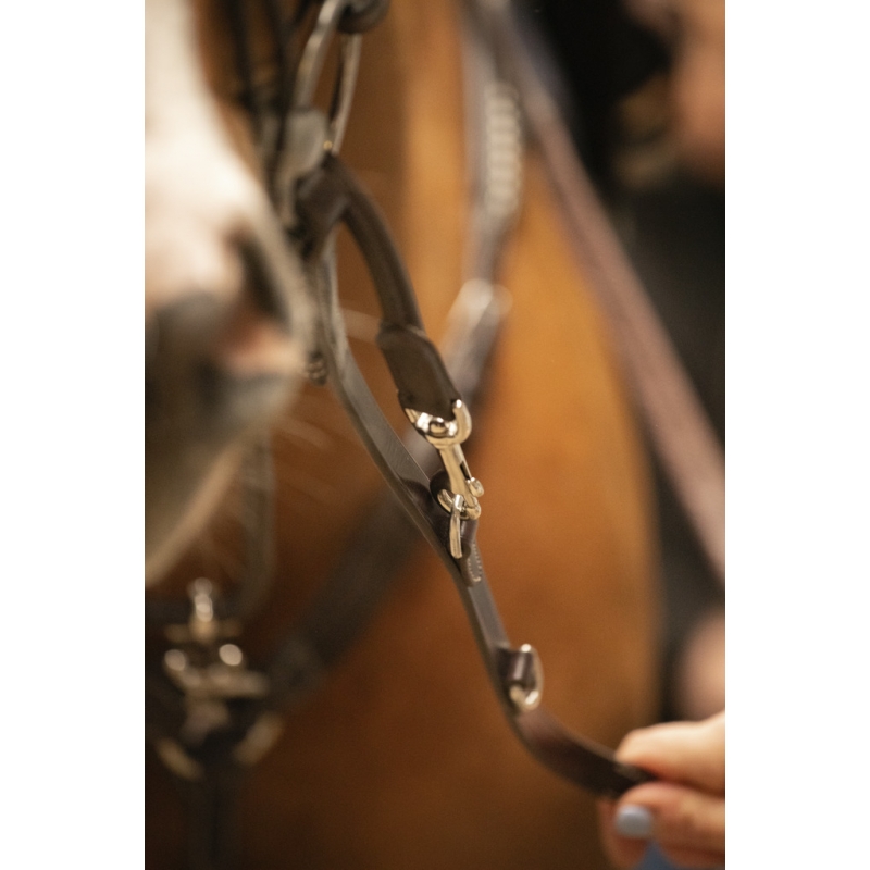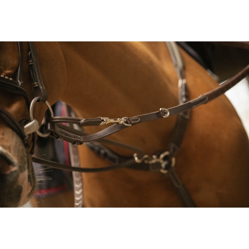 Howlett Training Aid compatible with our martin collar. It attaches to the central ring of the martin collar and allows the horse to work by raising his back line. When the horse gives way, the Howlett Training Aid also gives way, eliminating the nuisance of the rider's hand. It is used with our pair of Howlett reins.