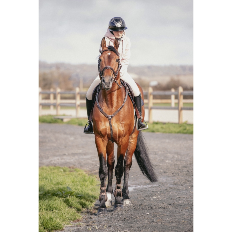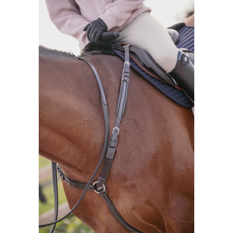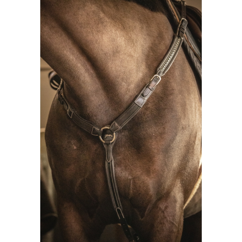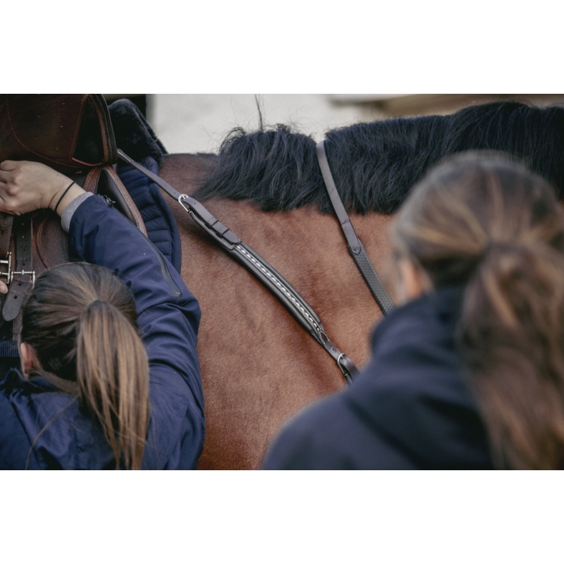 The martin collar is a combination of a hunting collar and a martingale. Like the first model, this second version of this technical product was created in collaboration with Pénélope Leprevost.