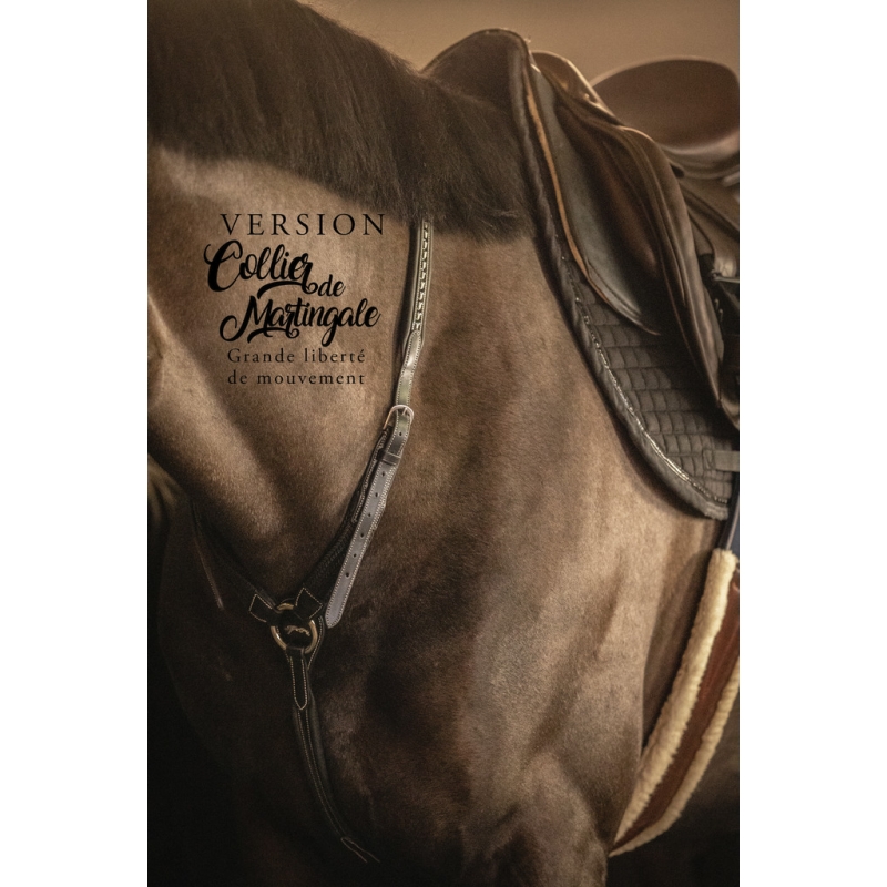 The martin collar is a combination of a hunting collar and a martingale. Like the first model, this second version of this technical product was created in collaboration with Pénélope Leprevost.