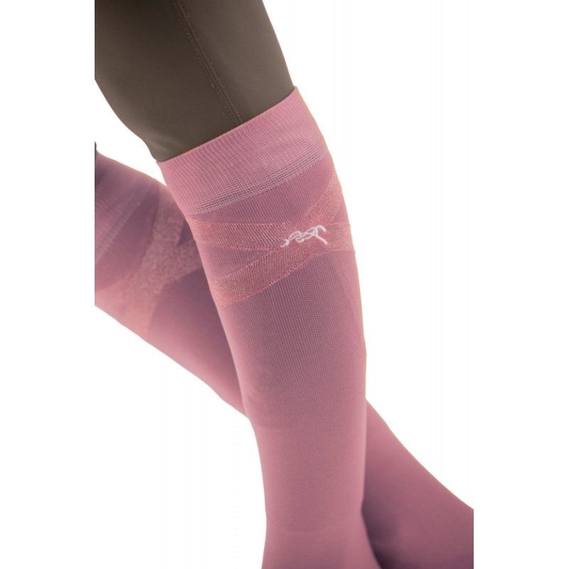 Gummy Riding Socks from the Pénélope Collections are adorned with a silver cross enhanced by the Pénélope logo. Specifically designed for horse riding, they are stretchy and rise just below the knee. Thin and form-fitting, they slide easily under boots or half-chaps.
