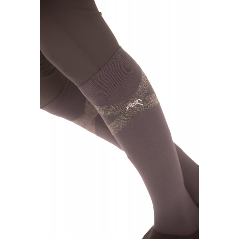 Gummy Riding Socks from the Pénélope Collections are adorned with a silver cross enhanced by the Pénélope logo. Specifically designed for horse riding, they are stretchy and rise just below the knee. Thin and form-fitting, they slide easily under boots or half-chaps.