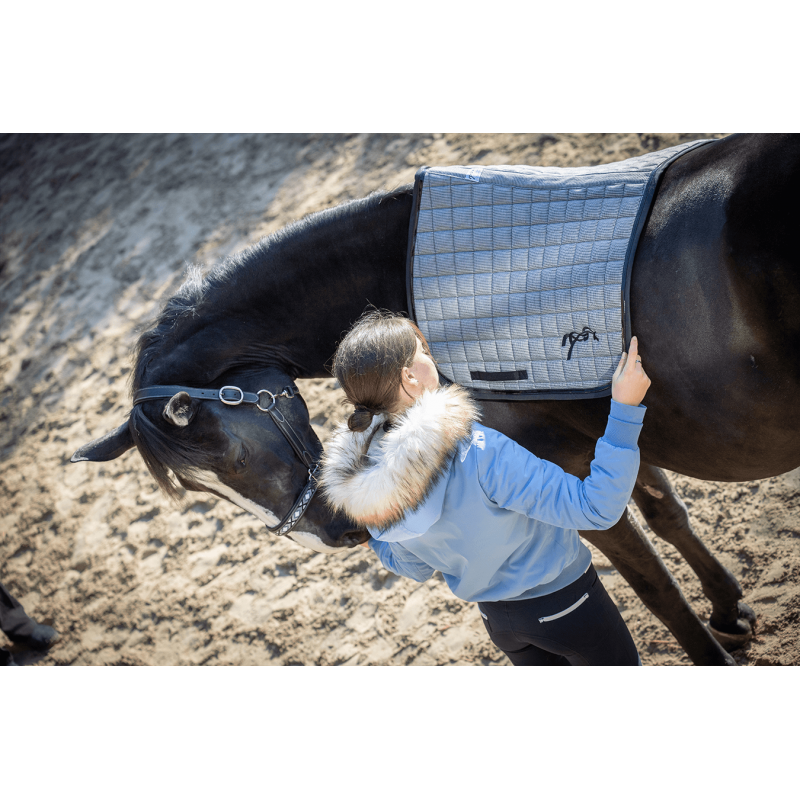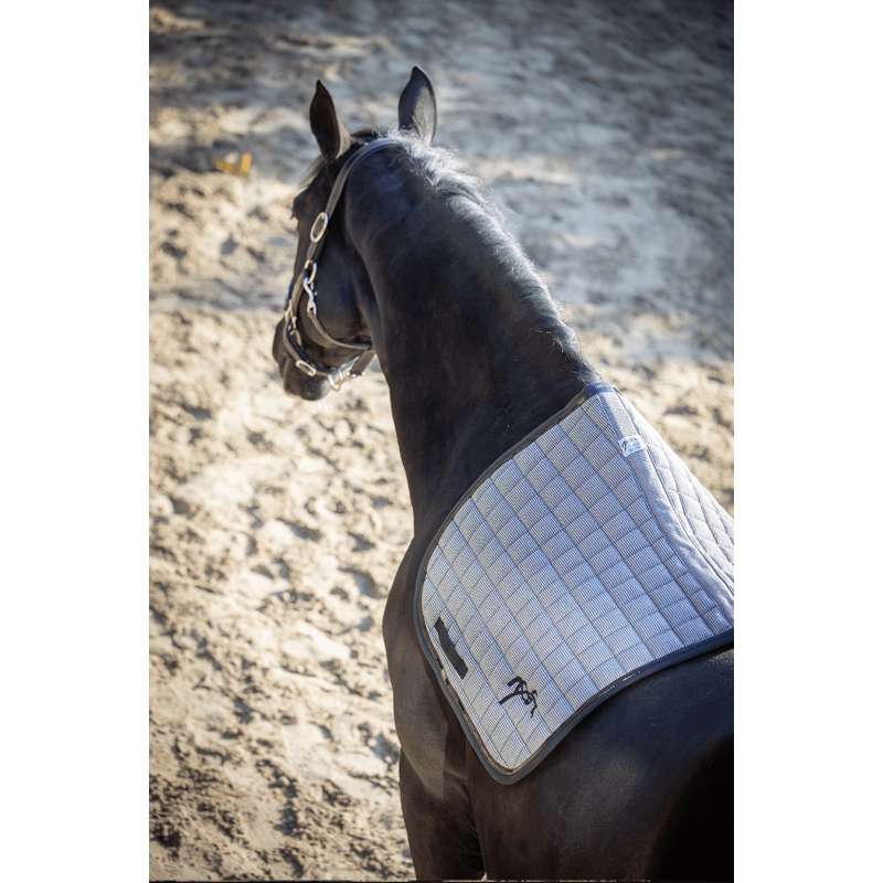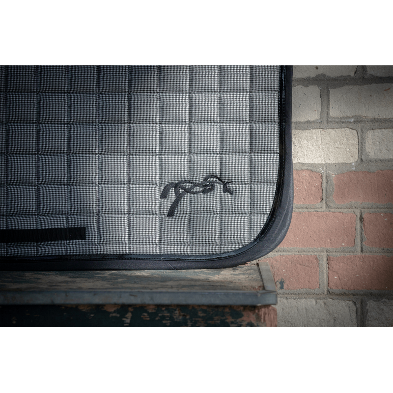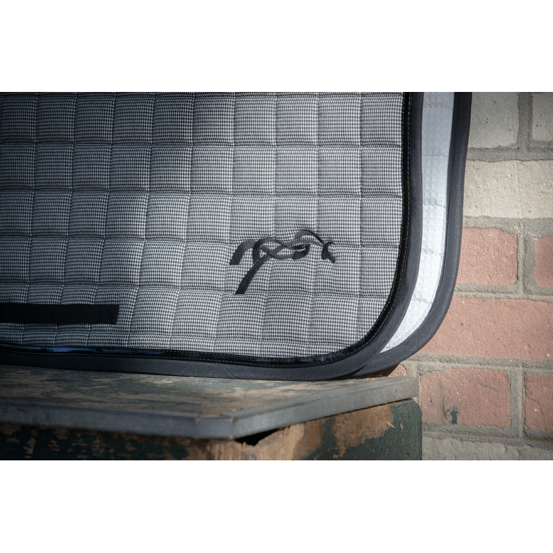 New color with a new houndstooth pattern for 2021/2022 season and we are keeping the usual line of the brand. The back line is well designed to release the withers easily. It still comes with a perfect fit, a girth strap on each side for a better stability on the horse's back. The thick padding gives an extra comfort to your horse. The brand logo is on the left side of the saddle pad.