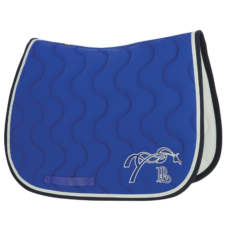 This lovely saddle pad with saddle stitch braid has a thick padding to protect the horse's back from shocks during training. Its cut-out allows the withers to be free. Very comfortable, the saddle pad has a honeycomb lining that allows air to circulate, absorbs and prevents excessive sweating of the horse. For a better support, two nylon girths prevent it from slipping under the saddle. The PL logo is on the left side of the pad.