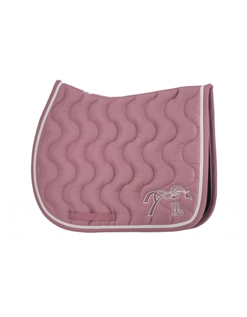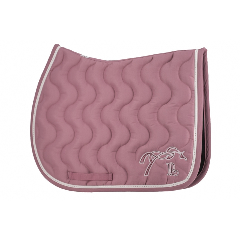 This saddle pad is adorned with a characteristic 'point sellier' trim from the Pénélope brand and features thick padding. Very comfortable for the horse, it has a honeycomb-like inner lining that allows air to circulate, absorbs, and prevents excess sweating. Its well-cut wither allows for easy placement. The shape of the pad fits perfectly to the horse's back. It also has two girth loops to keep it in place under the saddle. The PL logo is found on the left side of the pad.