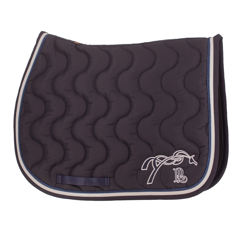 This saddle pad is adorned with a characteristic 'point sellier' trim from the Pénélope brand and features thick padding. Very comfortable for the horse, it has a honeycomb-like inner lining that allows air to circulate, absorbs, and prevents excess sweating. Its well-cut wither allows for easy placement. The shape of the pad fits perfectly to the horse's back. It also has two girth loops to keep it in place under the saddle. The PL logo is found on the left side of the pad.