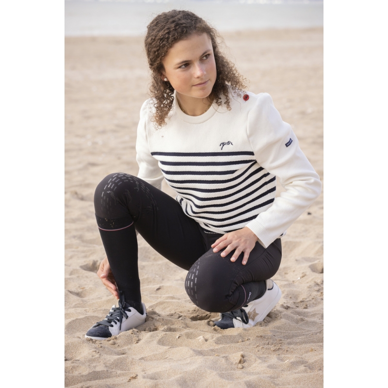 Maelle Pénélope pullover is from the branding partnership SAINT JAMES x Pénélope Collections. In this pure Sailing tradition, Maelle pullover is made of a super soft & light honeycombed mesh. On the left shoulder, just like a real sailor pullover, Maelle can be opened thanks to 3 buttons : a navy, white and a red all 3 with Pénélope logo in it. Finally, on the left sleeve, SAINT JAMES logo and on the chest, Pénélope's.