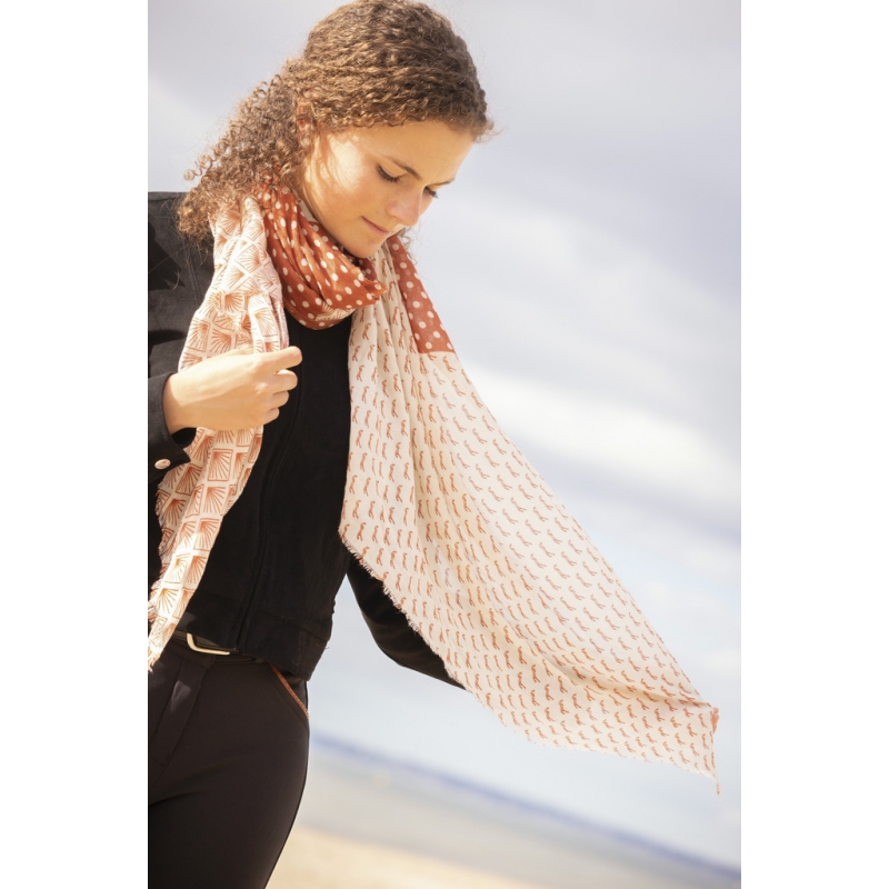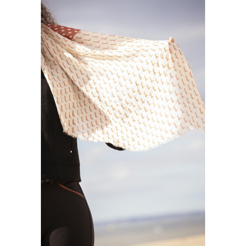 Our Alix stole is very light and soft, can easily be worn over your shoulders, neck, as a belt, or in your hair. It brings an equestrian touch to any of your looks.