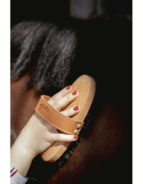 An extra-soft brush consisting of two types of bristles for precise, gentle, and neat brushing. Its oval shape and leather handle make it particularly practical and ensure a good grip. On the underside, in the center, ultra-soft bristles allow for very gentle brushing. All around, short and dense bristles help remove dirt and ensure thorough grooming.