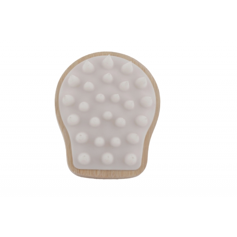 Massage brush from Pénélope Collections, featuring soft rubber bristles and a wooden handle. The Pénélope logo appears on the base of the brush. Ideal for applying a relaxing or therapeutic care, or simply for massaging your horse. The Pénélope massage brush offers a true moment of comfort and well-being for your horse.