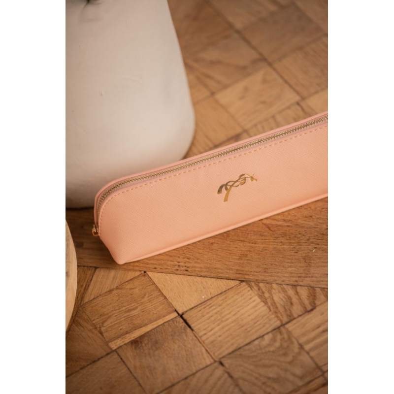 The pencil case from Pénélope Collection in its soft pink color is perfect for carrying a few pens and pencils with you wherever you go. It slips elegantly into your handbag. It can also hold a few miniature-sized skincare or makeup products. In terms of style, it features the Pénélope logo, beautifully embroidered in golden lurex thread. This pencil case will be your companion at the office or at school!