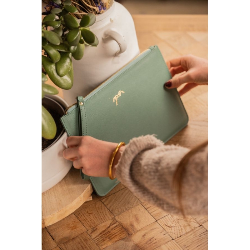 Elegant flat pouch that easily fits into a handbag or travel bag, adapting to your needs. It can hold all your small essentials—makeup, ID documents, or anything you want to keep safe. Measuring 17 cm wide and 26 cm long, it features the Pénélope logo in gold on the front and closes with a stylish golden zip.