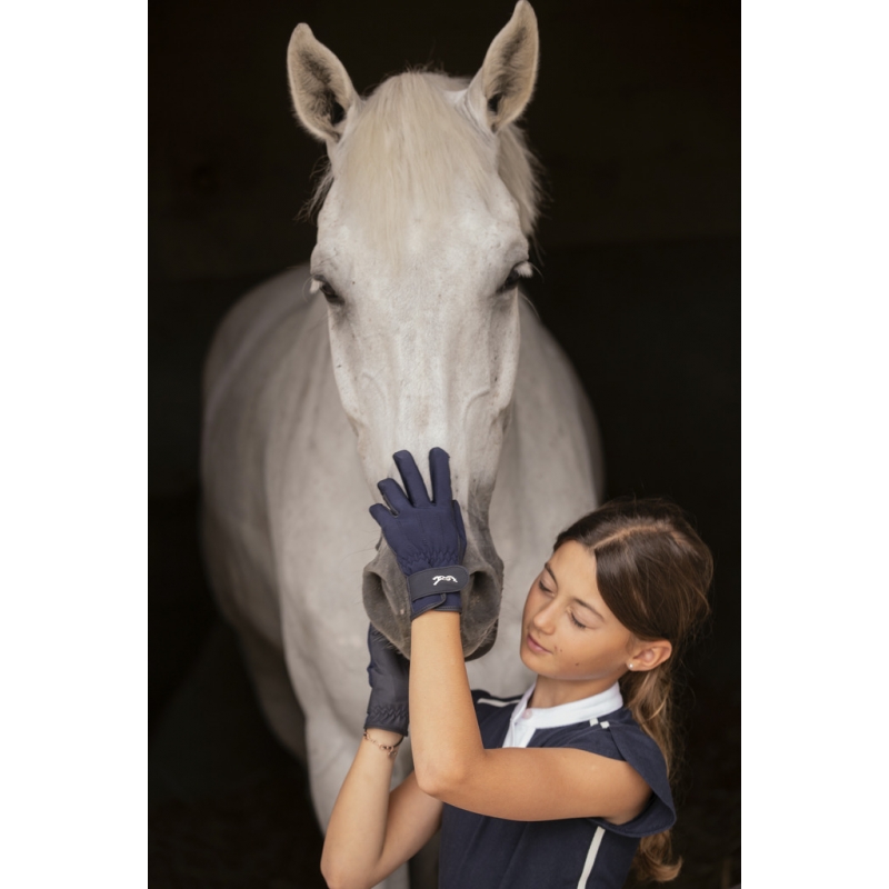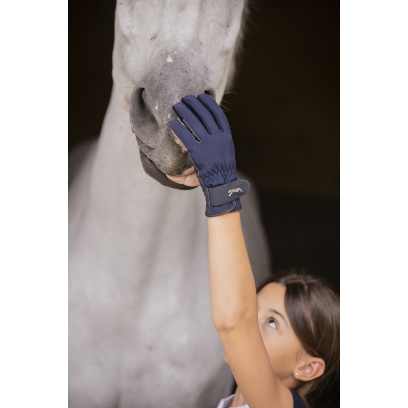 Gants d'équitation Hiver Eden by Pénélope pensés pour toutes les petites cavalières soucieuses de monter à cheval en protégeant leurs mains avec confort et élégance. Ils sont bien doublés pour garder vos mains au chaud l'hiver. Ils restent toujours léger à porter grâce à leur dessus de main ultra-stretch qui assure une liberté de mouvement optimale. L'intérieur de la main est antidérapant et l'extrémité de l'index et du pouce est recouverte d'un tissu "Digital Touch". Les gants Hiver se ferment par une patte surmontée d'une breloque Pénélope.