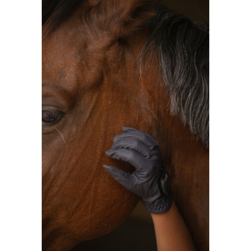 Girly les gants "Prisma" Pénélope collections ! Très confortables à porter tous les jours, ils sont fins, bien ajustés et permettent aux cavaliers de garder toute leur dextérité à cheval. La zone entre le pouce et l'index est renforcée pour une meilleure résistance dans le temps. Ils se ferment grâce à un velcro sur le dessus de la main et s'adaptent ainsi à plusieurs tailles de poignets. Sur ce velcro, on trouve le logo Pénélope en strass qui donne cette touche chic et discrète, 100% dans l'esprit Pénélope. Il peuvent s'utiliser à la fois quotidiennement aux écuries mais aussi en compétition.