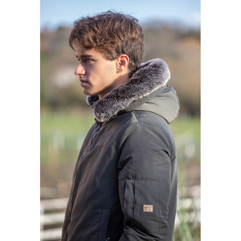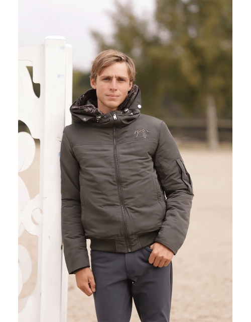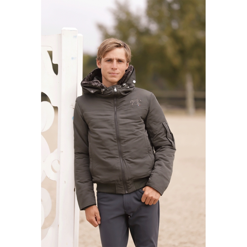 Un blouson Pénélope, oui mais pour homme désormais ! Le blouson Tiger est l'équivalent du blouson emblématique Lyon disponible pour femme. Déperlant et chaud, il est doté d'une bande élastique sur le bas et sur les poignets. Sa capuche bien enveloppante est doublée et cerclée d'une fausse fourrure amovible. Il a deux poches sur les côtés et une sur le bras. Le blouson Tiger se ferme grâce une grande fermeture éclair zippée sur le devant. Il est décoré d'un minuscule insert en contraste du logo Pénélope sur la manche, ainsi que la broderie ton sur ton sur le cœur. Notre blouson Tiger est idéal pour tous les amoureux masculins de la marque Pénélope qui aimeront le porter aux écuries comme en ville !