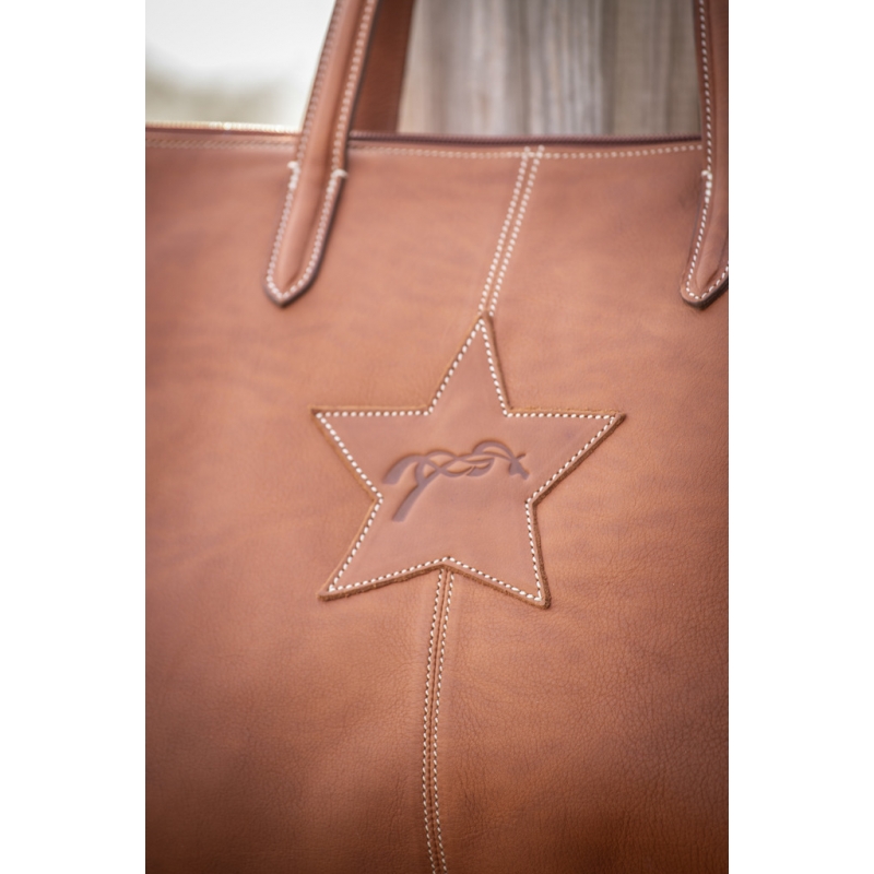 Sac à main en cuir de forme trapèze zippé sur le dessus. Il est orné de deux fines coutures centrales en point sellier crème, délicatement interrompues par une étoile cousue de la même manière, au centre de laquelle est embossé le logo Pénélope. Il a deux grandes anses dont l'arrondi mesure 60 cm au total (couture non comprises) qui permet un porté au bras, à la main, ou à l'épaule. La tirette du zip du dessus est estampillée du logo arabesque Pénélope qui symbolise l'amitié. A l'intérieur, le sac est non doublé et comprend une poche intérieure plate zippée confectionnée dans un tissu crème. D'une belle et grande contenance, elle permet de transporter (entre autre) plusieurs documents A4. En parallèle, le sac Gigari permet également de transporter tous les indispensables du quotidien : portefeuille, porte-monnaie, clefs, trousse de maquillage, téléphone portable etc.