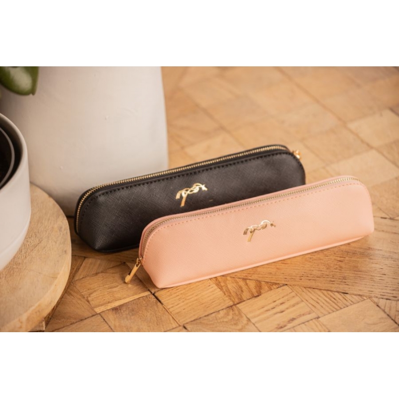 La trousse des Collections Pénélope dans son coloris noir est parfaite pour emporter partout avec soi quelques stylos et crayons. Elle se glisse avec élégance dans votre sac à main. Elle peut également recevoir quelques produits de soin ou de maquillage, au format miniature. Côté look, on y retrouve le logo Pénélope, marqué en doré. Cette trousse pourra vous accompagner au bureau comme sur les bancs de l'école !