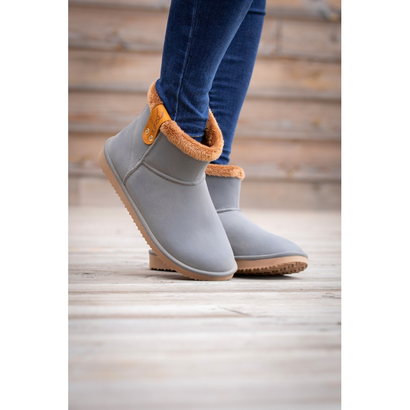 C'est presque une petite révolution dans le monde de la boots imperméable et chaude ! Nos petites boots déjà disponibles en plusieurs coloris de saison, nous reviennent en 2021, en gris et brun. Très imperméables, elles sont entièrement composées de caoutchouc. L'intérieur est en fausse fourrure très douce pour apporter une bonne chaleur aux pieds. Une pâte en similicuir est fixée sur le revers de la boots, à l'extérieur où le logo Pénélope y est estampillé. La semelle est épaisse pour une bonne isolation supplémentaire du froid.