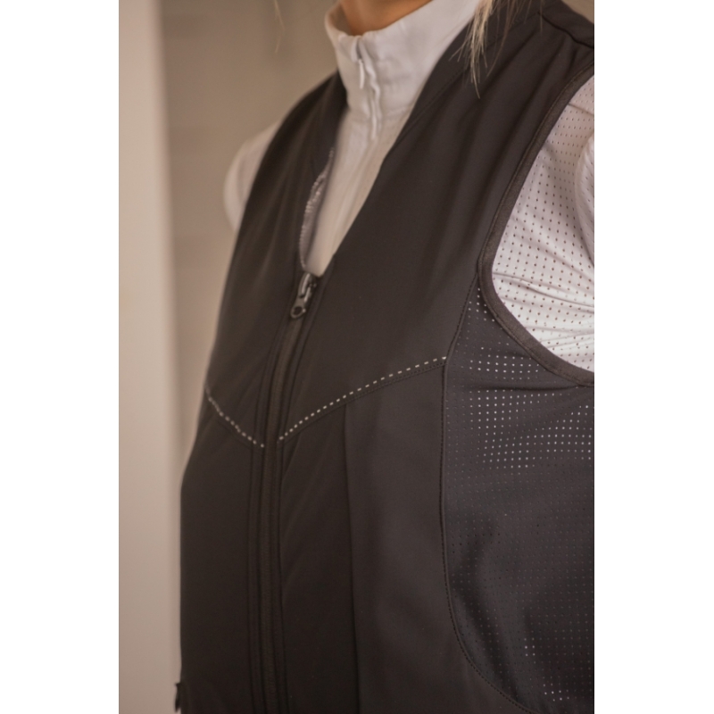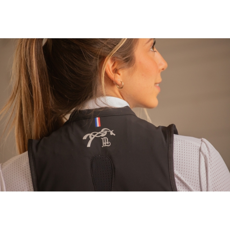 Notre gilet airbag Airlight 2 est conçu pour être porté ajusté, soit seul ou sur notre veste de concours New York (disponible ICI), les vestes de concours Paris Soft Air (disponible ICI) ou tout autre vêtement certifié "Freejump Airbag Technology compatible jacket"* (*Veste compatible avec la technologie Airbag Freejump). Il se ferme grâce à un zip sur le devant et deux rangs en V de points sellier dessine bien le produit et lui donne ce ton Pénélope inimitable.
