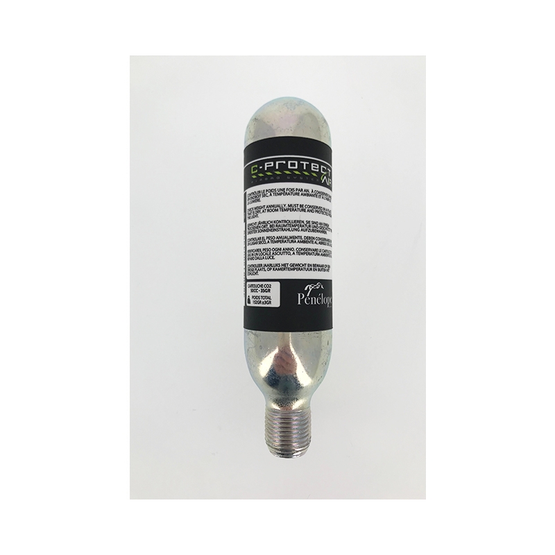 C'est cette précieuse cartouche qui permet à notre gilet de vous protéger en se gonflant en 0,1 seconde. Elle est facilement remplaçable.