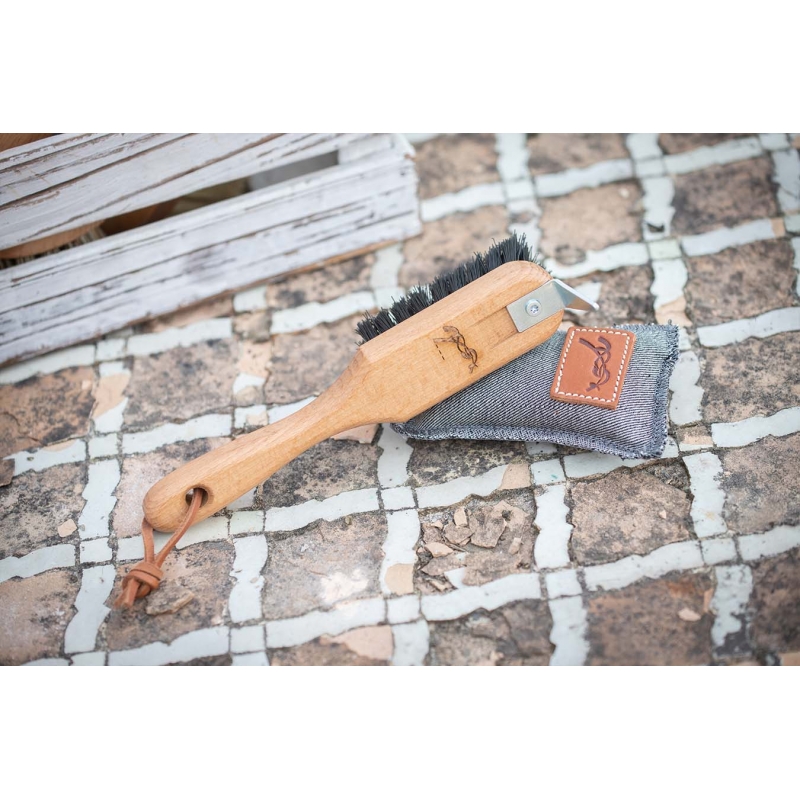 Un combiné cure-pied et brosse équipé d'un manche pour une bonne prise en main. Il cure et nettoie la paroi et la sole du sabot à la perfection. On retrouve le logo Pénélope sur le dos de la brosse comme sur tout le reste de la gamme.