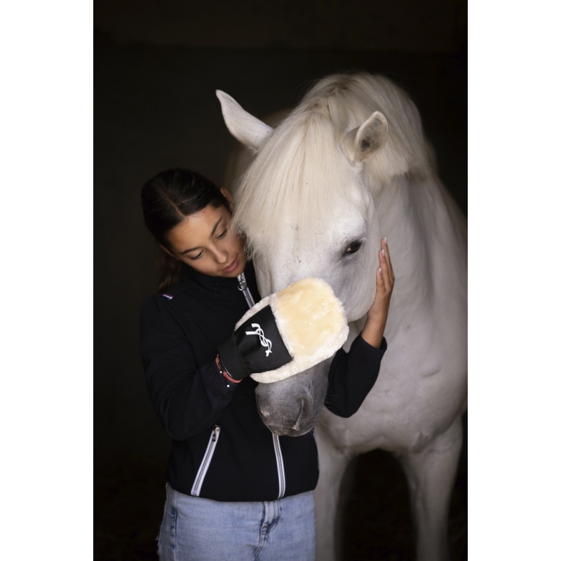 Simplicité extrême pour ce gant de pansage made in Pénélope qui va s'avérer très utile pour lustrer la robe de vos chevaux. En mouton synthétique, il a un élastique au niveau du poignet pour qu'il se maintienne en place et le logo est placé sur le revers de la main. Quelques gouttes de spray lustrant dessus et votre cheval brillera de mille feux ! Bon pansage à tous !