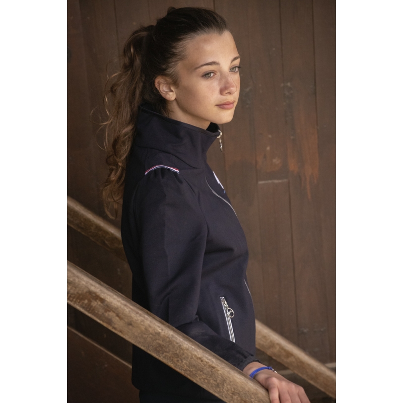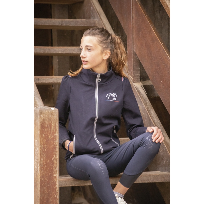 Tweety en version enfant. Très jolie veste manches longues légère avec des bandes élastiques autour des poignets et de la taille. Elle possède de petites fronces au niveau des épaules sur lesquelles on peut voir un fin galon bleu, blanc, rouge. Sur le cœur, on trouve le logo Pénélope souligné par un fin drapeau également bleu, blanc, rouge. Deux poches zippées sur le devant complètent le look très frenchy mais sobre de cette veste à porter pour l'inter-saison ou en sous-couche lors de la saison hivernale.