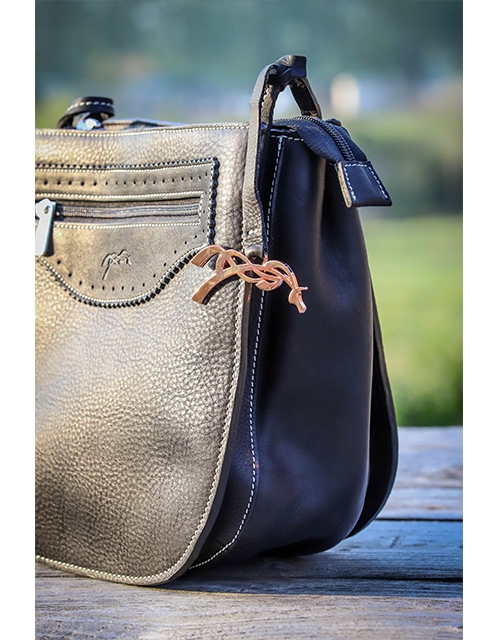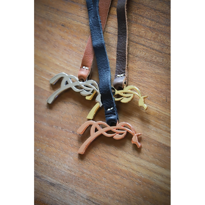 Disponible en Cuir noir et breloque rose gold mais aussi en Cognac-argent et Havane-doré.