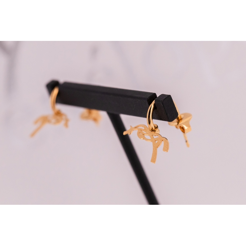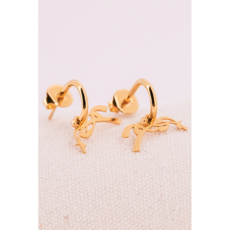 Paire de boucles d'oreilles type créoles. Un petit modèle qui ne va pas passer inaperçu à vos oreilles et qui va apporter une touche équestre à votre look… Le logo Pénélope est suspendu à un petit anneau et l'ensemble se ferme grâce à un bouton poussoir.