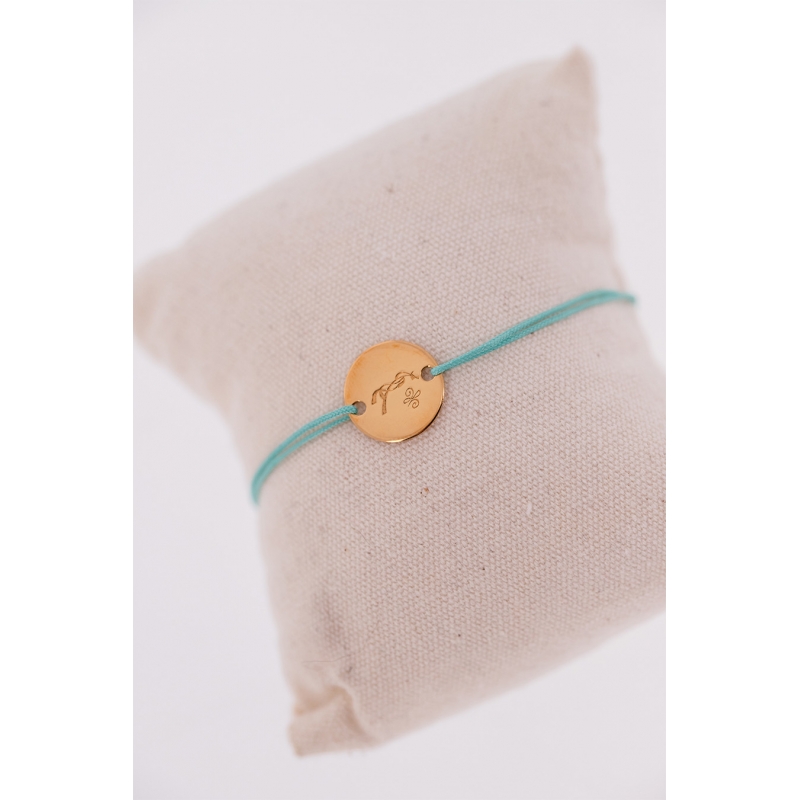 Bracelet Pénélope cordon Zoé délicatement dessiné avec son cordon très fin rehaussé par une médaille dorée sur laquelle on trouve le petit cheval Pénélope incrusté.