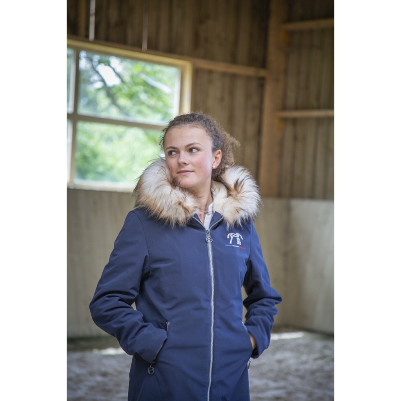 La partie 3/4 de notre parka Marina est dotée de deux poches zippées sur le devant. Elle s'ouvre à l'arrière par un zip discret pour plus de confort ou pour la porter à cheval même si son utilisation est aussi orientée pour la ville. C'est l'alliée idéale une fois descendue de cheval ou pour toutes celles qui restent au bord de la carrière ou du manège.