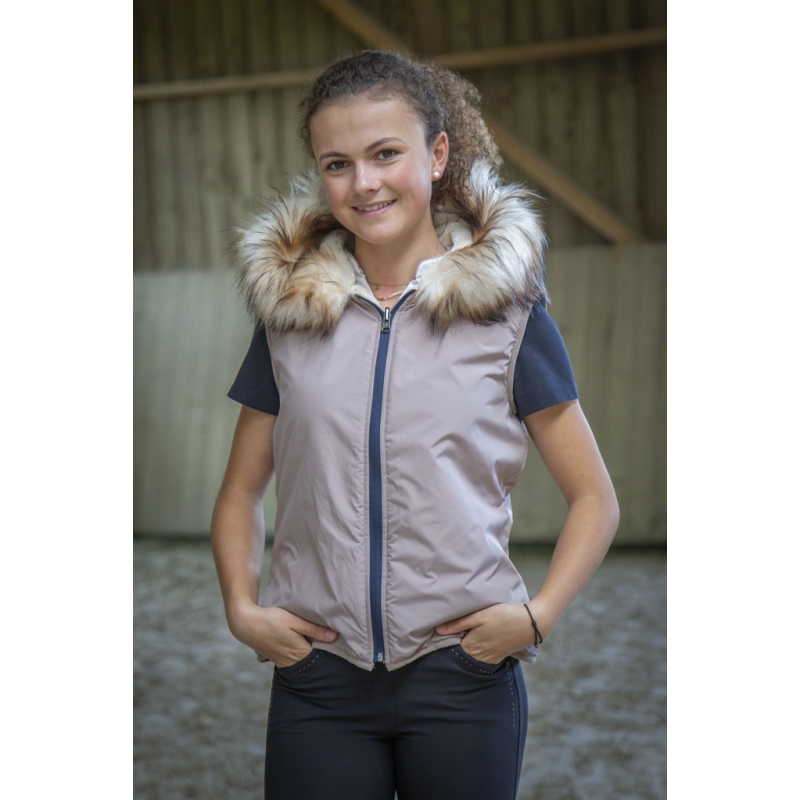 Ce modèle est dotée d'une capuche reliée à la doublure, elle est non-amovible et doublée d'une belle fausse fourrure.
