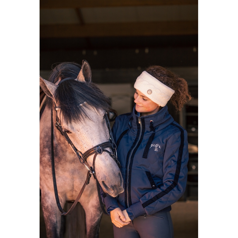 Blouson matelassé Luka Pénélope avec un col montant. Il est confectionné dans un tissu au toucher "Soft", matelassé et très agréable à porter. A l'arrière, son bas du dos smocké lui offre une coupe cintrée et le féminise parfaitement. Une matière velours vient s'ajouter en petites touches. On la retrouve en fines bandes le long de chaque bras, sur les cordons de serrage du col, au niveau de la fermeture des poches et sur chaque côté du zip. Il se ferme grâce à un grand zip sur le devant et possède aussi deux poches qui se ferment par un bouton pression orné du monogramme "PL". On distingue également le petit logo Pénélope brodé sur le cœur.