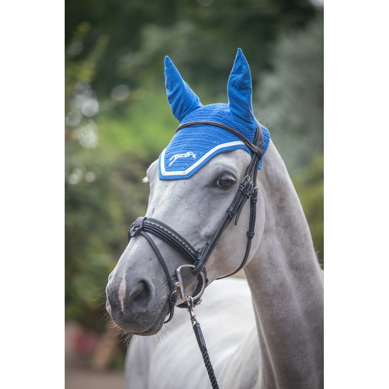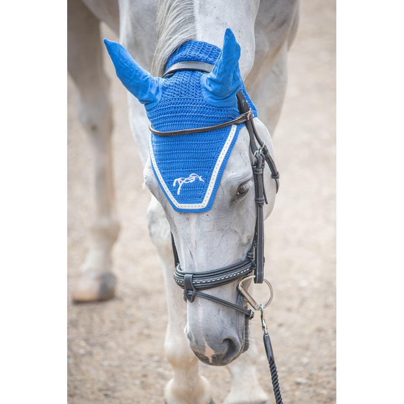Un bonnet aux oreilles élastiques et souples. Ce bonnet est ce qu'il y a de plus confortable pour votre cheval, pour qu'il ne soit pas perturbé par l'environnement et les insectes lors des concours. En coton crocheté, le bonnet point sellier fly coton est décoré d'un galon blanc sur le contour du chanfrein et la broderie du logo Pénélope est assortie pour plus d'élégance. Sa forme est parfaitement dégagée derrière les oreilles pour pouvoir mettre un bridon anatomique. Il est doté d'une découpe carrée à l'avant. Ce bonnet s'associe parfaitement au tapis point sellier de la même couleur ICI