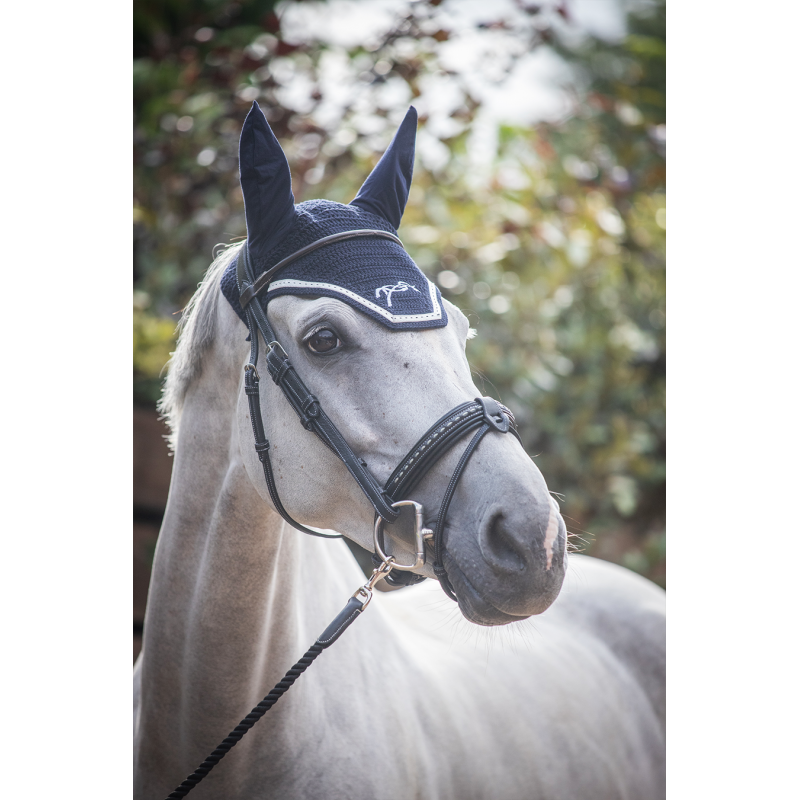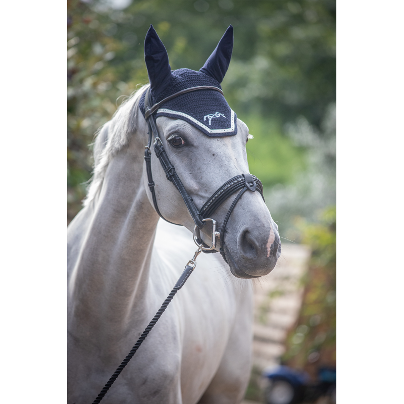 Un bonnet aux oreilles élastiques et souples. Ce bonnet est ce qu'il y a de plus confortable pour votre cheval, pour qu'il ne soit pas perturbé par l'environnement et les insectes lors des concours. En coton crocheté, le bonnet point sellier fly coton est décoré d'un galon blanc sur le contour du chanfrein et la broderie du logo Pénélope est assortie pour plus d'élégance. Sa forme est parfaitement dégagée derrière les oreilles pour pouvoir mettre un bridon anatomique. Il est doté d'une découpe carrée à l'avant. Ce bonnet s'associe parfaitement au tapis point sellier de la même couleur ICI