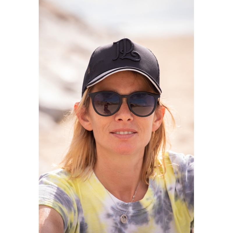 Le devant de la casquette porte les initiales "PL" ainsi qu'un petit logo du cheval Pénélope brodé ton sur ton.
