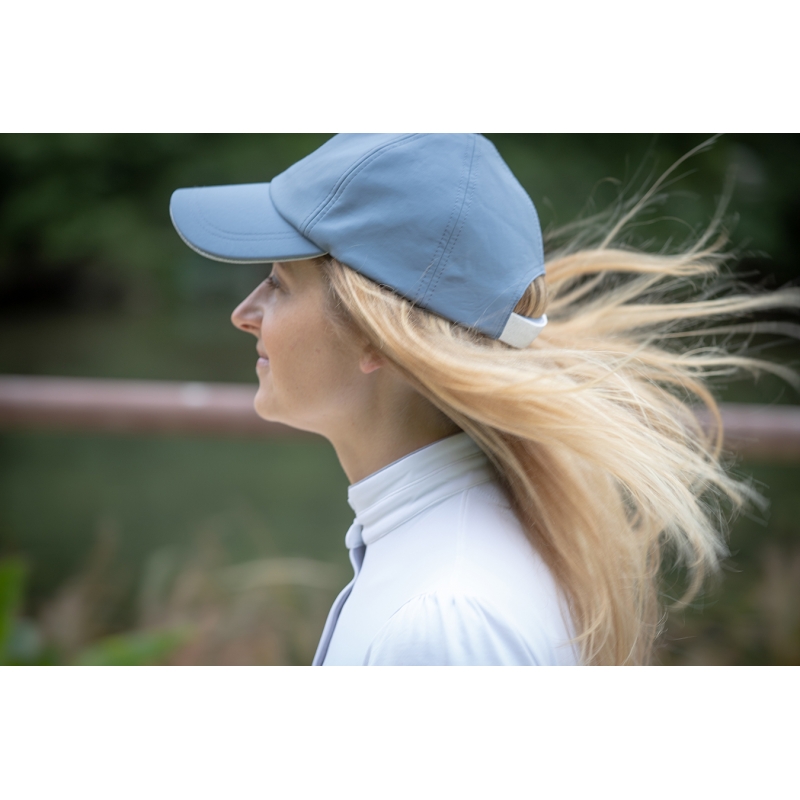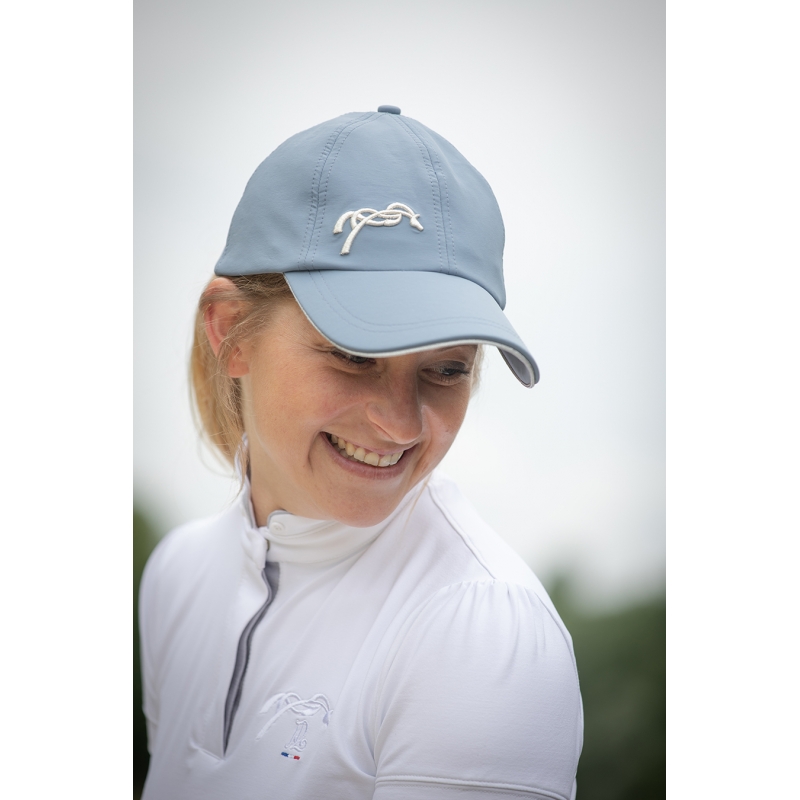Notre jolie casquette pour la belle saison 2022! Toute en légèreté et sobriété avec ce coloris bleu artic très frais et qui s'assortit avec de nombreux looks équestres ou citadins. La casquette Pénélope est idéale pour toutes les cavalières qui souhaitent se protéger du soleil une fois à terre ou pour toutes celles qui veulent garder un look sportswear en ville comme aux écuries. Sa découpe est parfaite et s'adapte à toutes les formes et tailles de tête grâce (aussi) à son scratch argenté réglable à l'arrière. Notre logo est brodé à l'avant droit, un peu en décalé et en 3D.