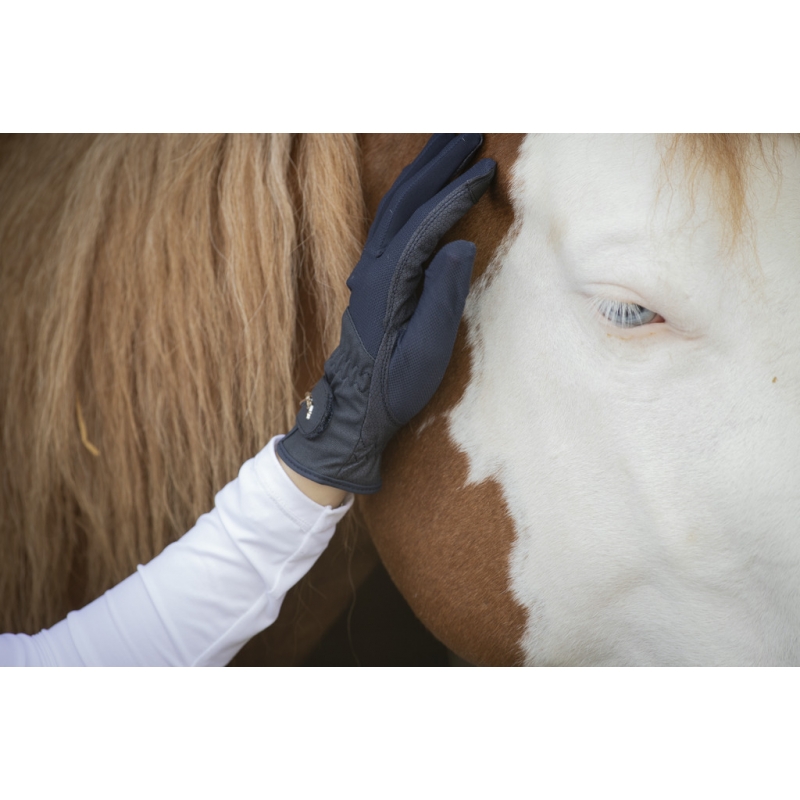 Déjà disponible en coloris noir ICI, le gant d'équitation Compétition des Collections Pénélope est pensé pour toutes les cavalières soucieuses de monter à cheval en protégeant leurs mains avec confort et élégance. Il est léger à porter grâce au dessus de la main ultra-stretch qui assure une liberté de mouvement optimale. L'intérieur de la main est antidérapant et l'extrémité de l'index et du pouce est recouverte d'un tissu Digital Touch. Le gant se ferme par une patte surmontée d'une breloque Pénélope.