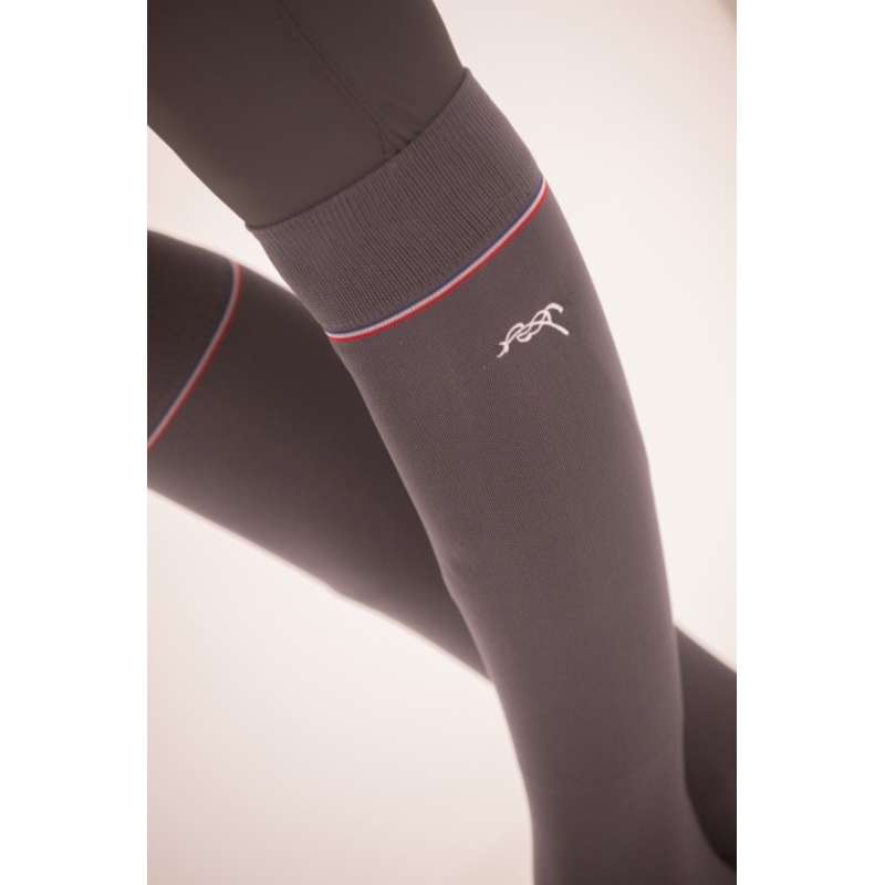 La douceur des couleurs et le touché extraordinaire de nos chaussettes Luxe ! C'est un plaisir de les passer tous les jours sur votre pantalon d'équitation, on aurait presque envie de les porter pour rester chez soi au chaud, bien confortablement ! Elles sont bien évidemment faites d'abord pour monter à cheval, tous les jours aux écuries mais aussi en concours ! Le lot de deux paires de chaussettes Luxe Pénélope est composé d'une paire unie avec trois traits fins tricolores et d'un mini logo Pénélope et d'une autre paire composée de surpiqûre en losange et d'un mini-logo Pénélope.