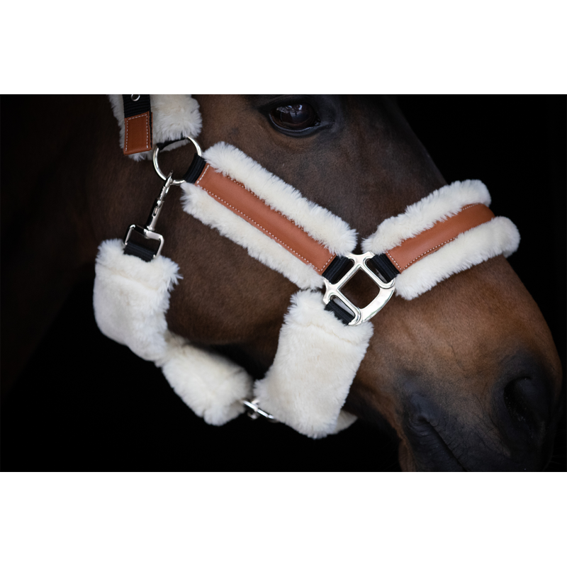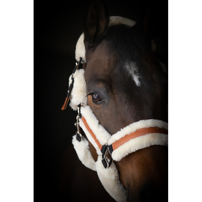 Un licol qui pense confort et esthétisme pour votre cheval. Le cuir sur la muserolle et sur les deux montants de chaque côté est entouré d'un véritable faux-mouton. Le reste du licol est en nylon, également recouvert par du mouton synthétique. Il est très souple et agréable à manipuler. Il est idéal pour faire voyager votre cheval à l'attache avec un maximum de confort ou pour des séances de pansage au top de la douceur !
